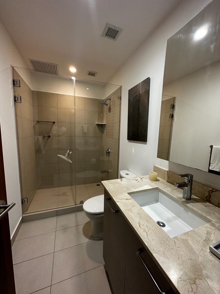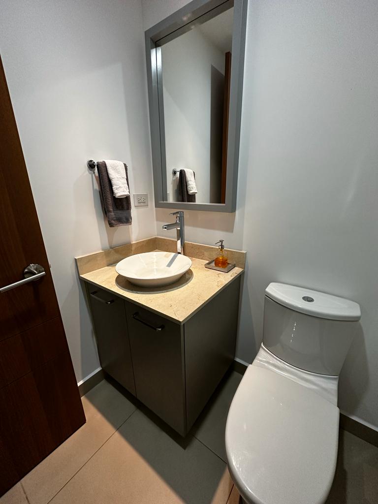 8) Los tres baños cuentan con accesorios para baños y espejos en tono según el mueble del apartamento cuentan