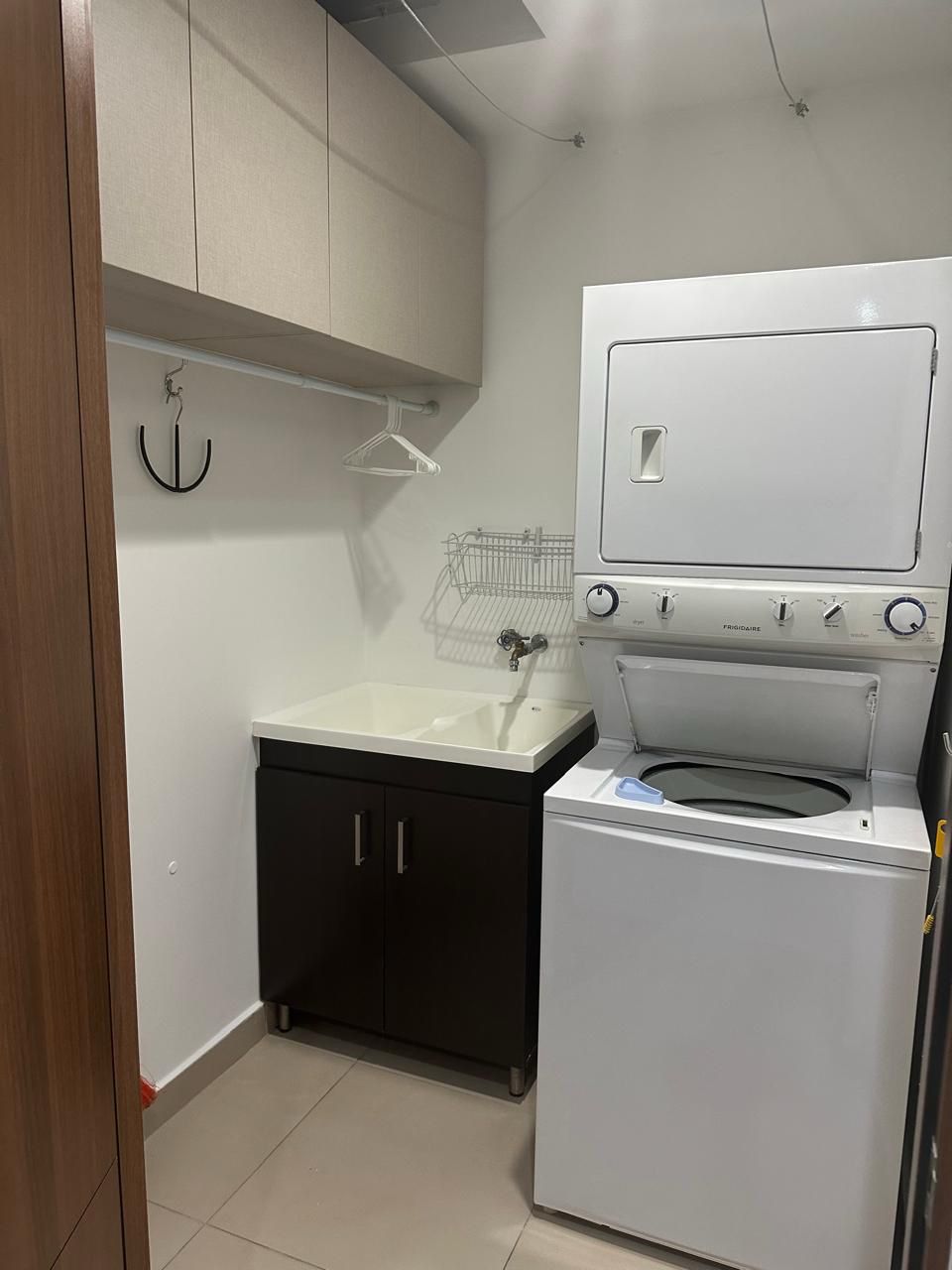 2) Torre Mabe : lavadora y secadora . Mueble aéreo para organizar.