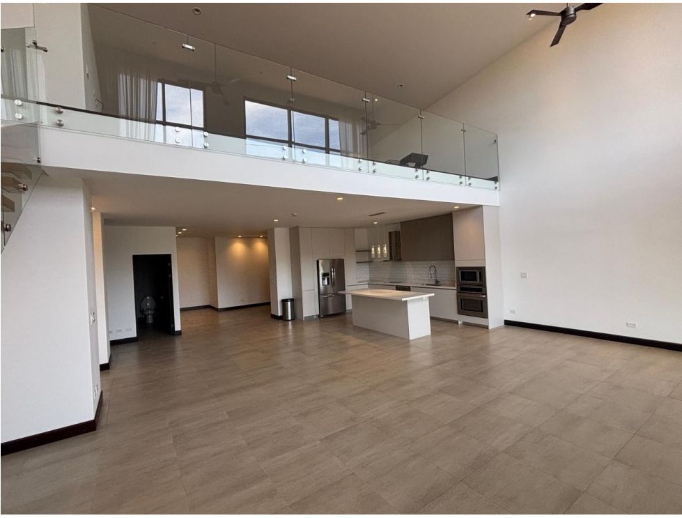 - área social: sala- comedor- cocina integrados, doble altura