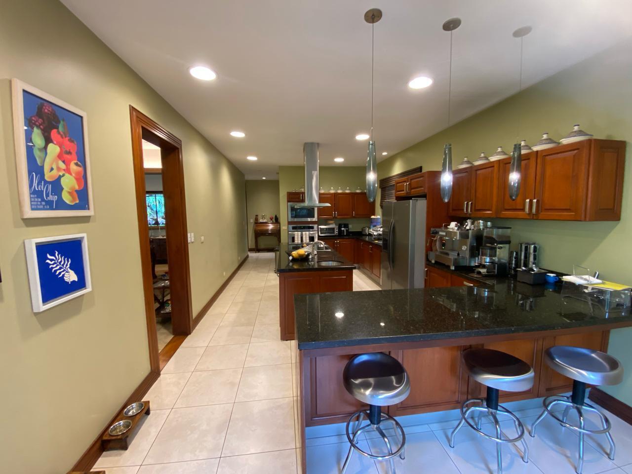 Cocina: Sobres de granito, isla central, conexión a la terraza