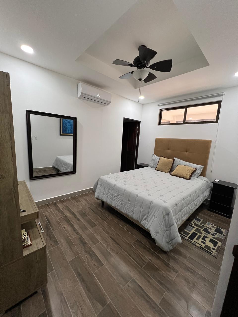 comedor y la cocina. En la parte posterior se encuentran 3 habitaciones con su respectivo baño y una oficina,